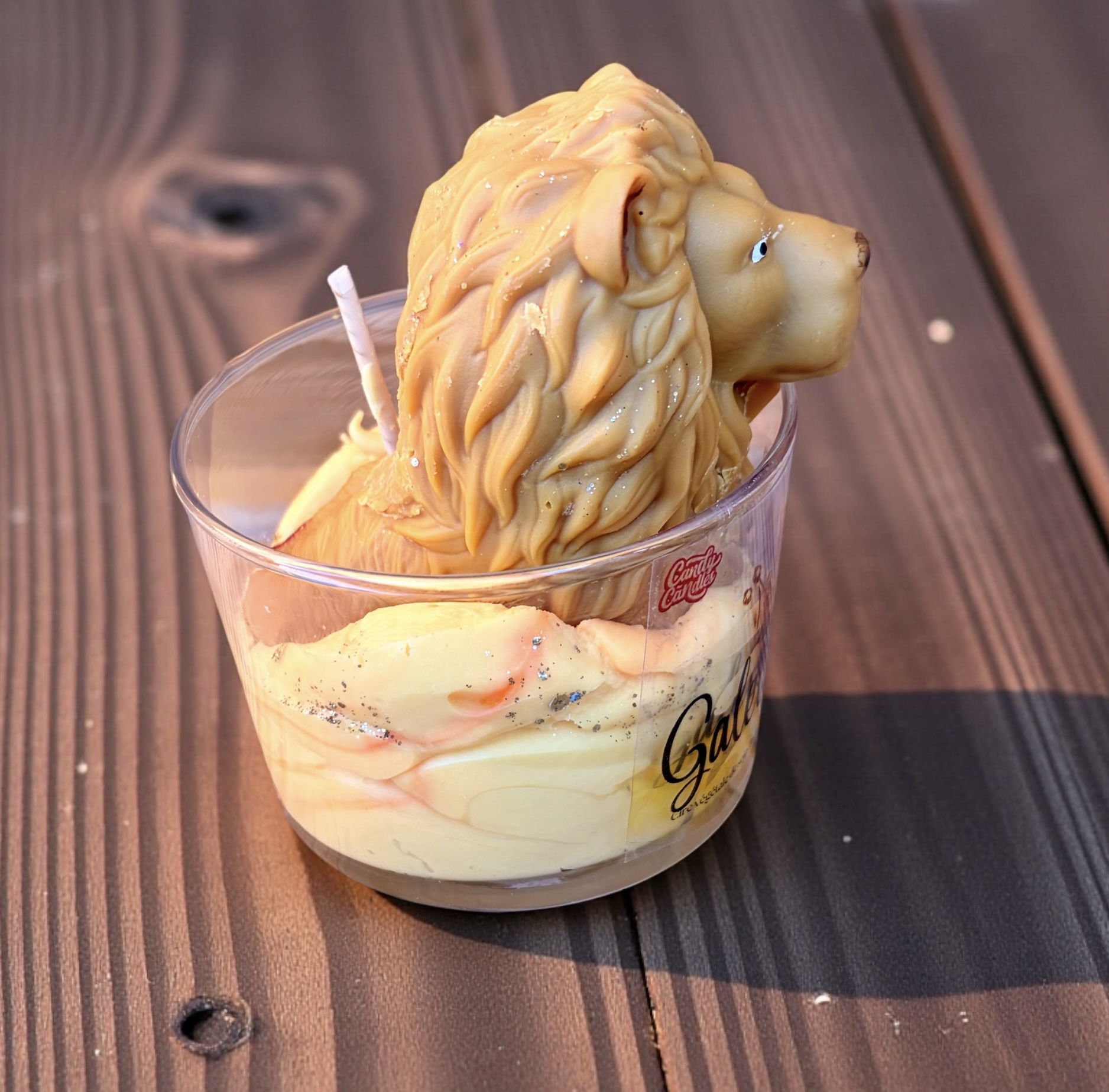Son lion majestueux, véritable roi de la fête, trône fièrement au cœur de la bougie pour une création qui ne passe pas inaperçue.