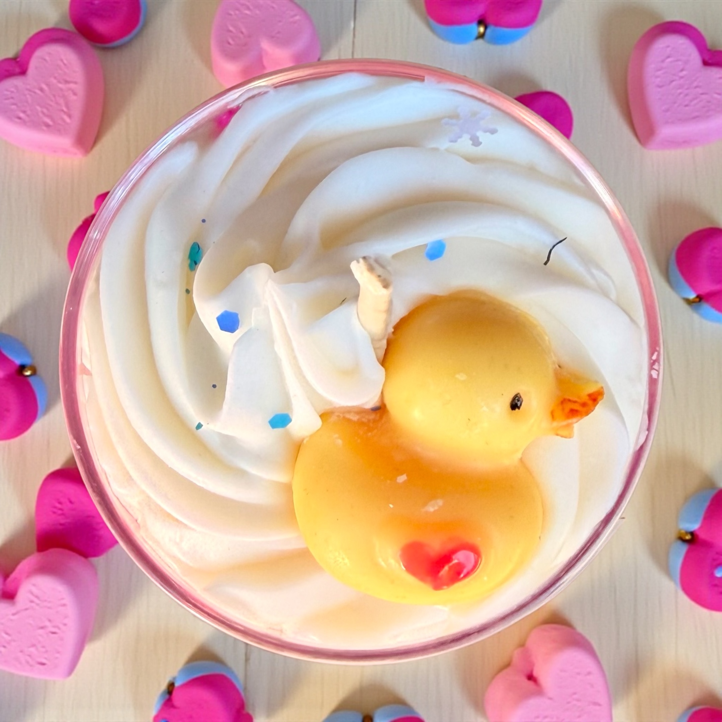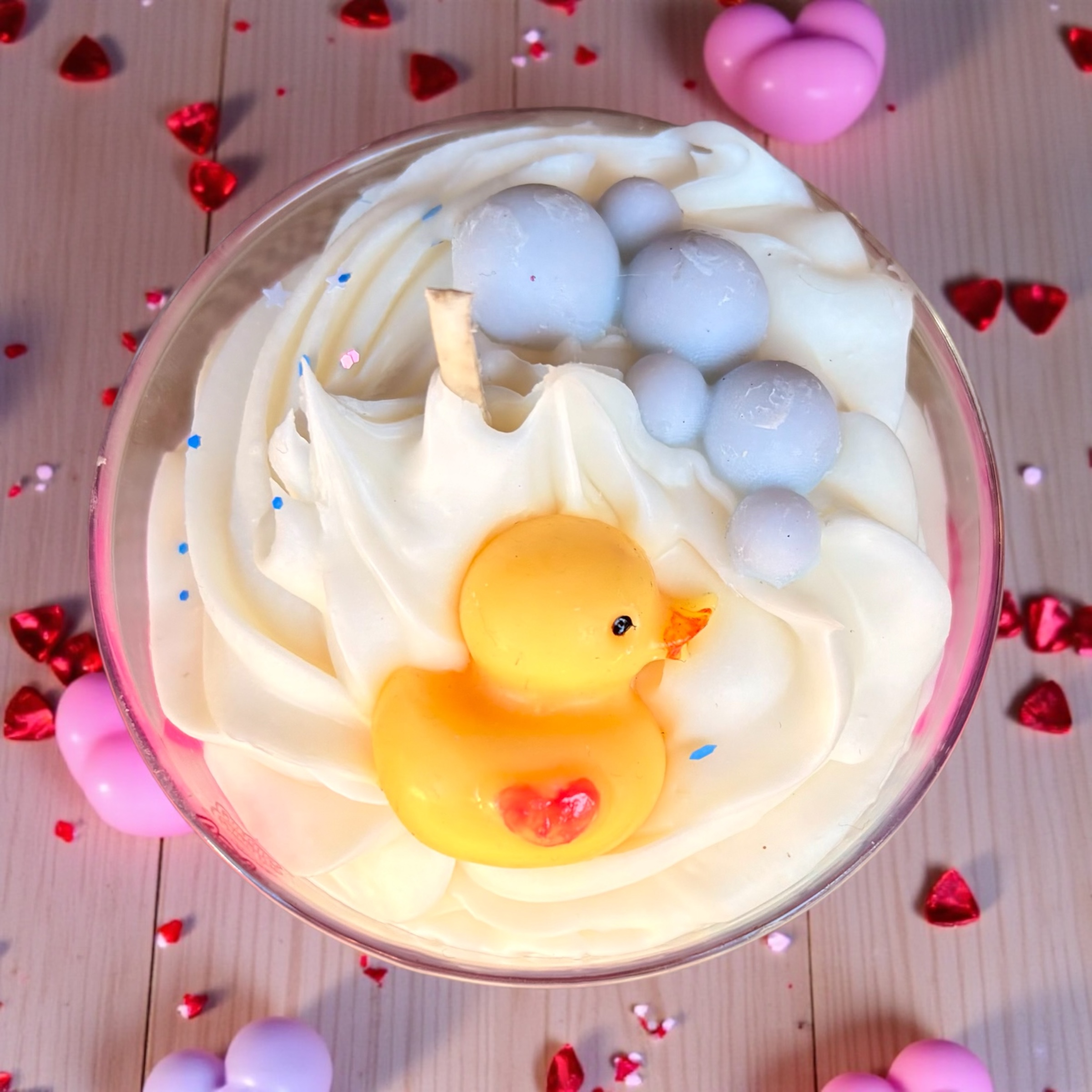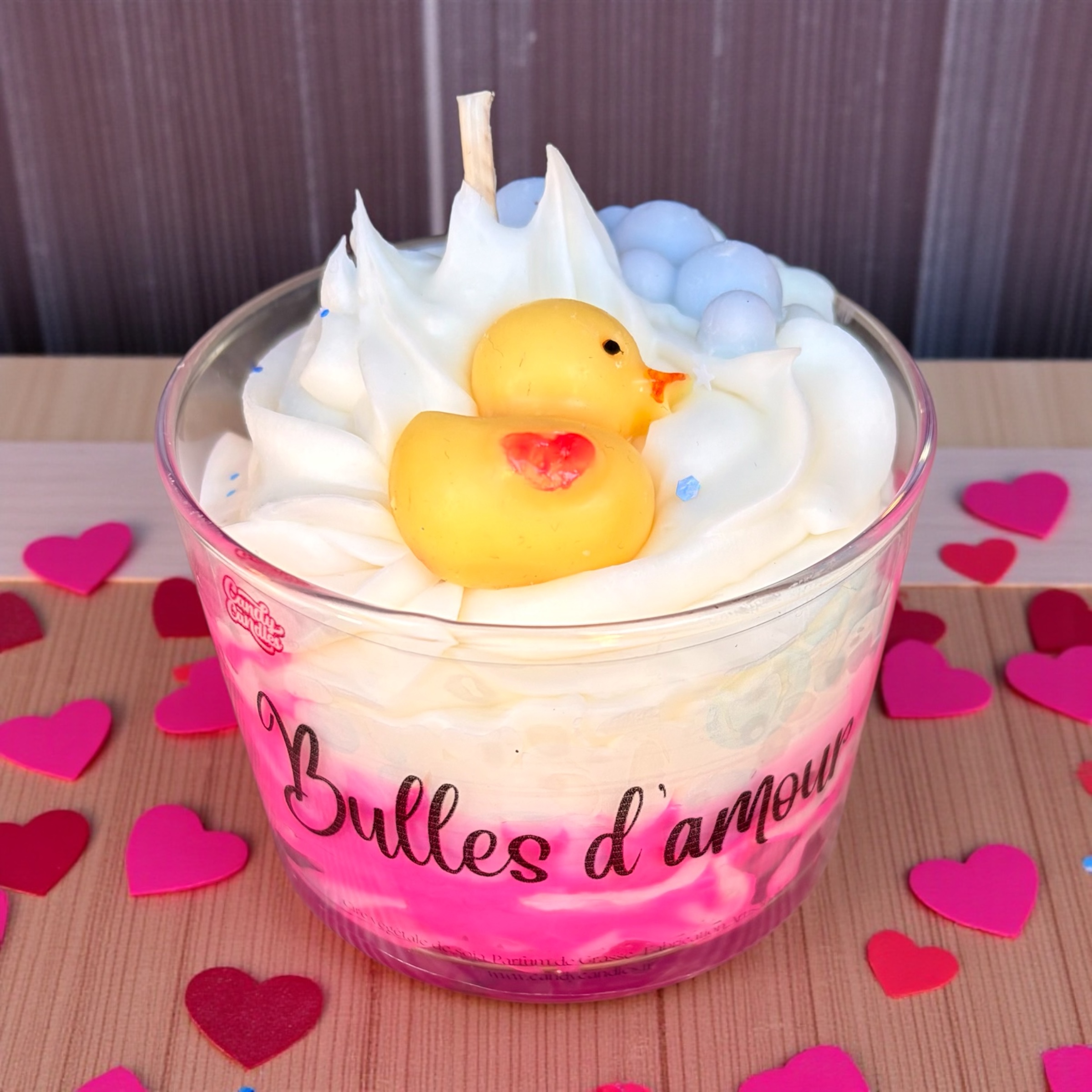 Son design gourmand et poétique, sublimé par une chantilly de cire onctueuse, des bulles légères et un petit canard, en fait une véritable bougie doudou, à la fois décorative et sensorielle. Les nuances de rose et de blanc rappellent la douceur, l’amour et la pureté.
